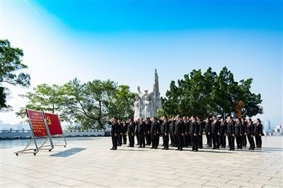“我志愿加入中國共產(chǎn)黨,擁護(hù)黨的綱領(lǐng),遵守黨的章程……”今年7月,百色市中級人民法院黨員到百色起義革命烈士紀(jì)念碑廣場開展黨日活動,緬懷革命先烈,重溫入黨誓詞。鏗鏘的誓詞,久久回蕩在紀(jì)念碑上空,銘刻在每一個(gè)人的心頭。