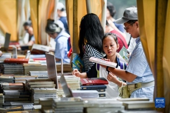 9月8日,市民在中國(guó)書(shū)店展棚前挑選書(shū)籍。
