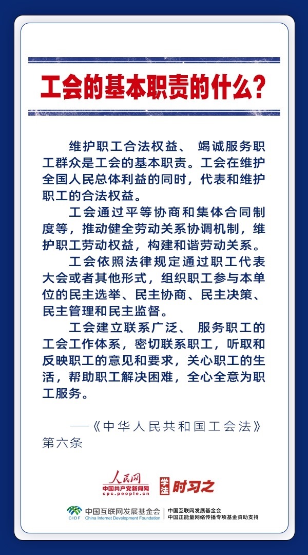 日前,中華全國(guó)總工會(huì)新一屆領(lǐng)導(dǎo)班子產(chǎn)生。黨和政府歷來重視工會(huì)的地位作用,十分注重加強(qiáng)工會(huì)法律制度建設(shè),專門為廣大職工制定了《中華人民共和國(guó)工會(huì)法》。網(wǎng)約車司機(jī)、快遞員、外賣配送員能入工會(huì)嗎?產(chǎn)業(yè)工人隊(duì)伍建設(shè)改革的目標(biāo)是什么?企業(yè)開會(huì)討論哪些事項(xiàng)必須有工會(huì)代表參加?一起來了解。