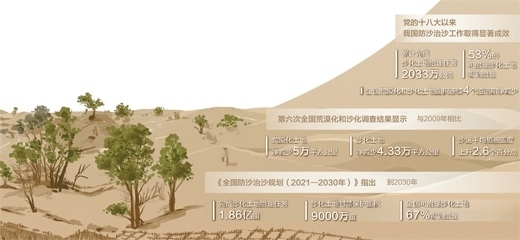 如今,烏蘭布和沙漠林草覆蓋度從上世紀(jì)50年代初期的0.04%提高到37.2%,呈現(xiàn)出“整體好轉(zhuǎn)、改善加速”的良好態(tài)勢(shì),正在實(shí)現(xiàn)從“沙進(jìn)人退”向“綠進(jìn)沙退”的轉(zhuǎn)變。