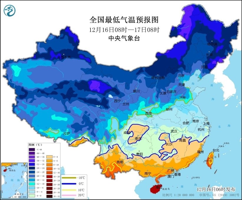 中央氣象臺12月16日06時發(fā)布寒潮藍(lán)色預(yù)警: