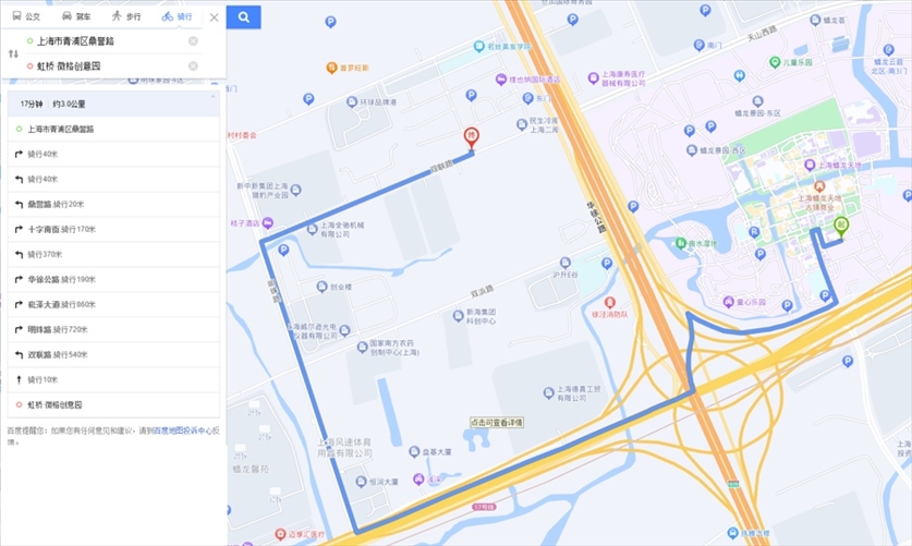 記者與陳陽陽取得了聯(lián)系,他發(fā)來3張逆行路線截圖,都是他這幾天日常送餐中遇到的。一單為從蟠龍?zhí)斓厮屯m韻文化中心,平臺規(guī)劃的騎行路線為先沿潘鼎路向南抵達崧澤高架路,再沿著崧澤高架路北側輔道向東,抵達蟠龍路后再向南……“崧澤高架北側輔道只能由東向西行駛,平臺讓沿著輔道向東騎行,這不是在逆行嗎?”陳陽陽稱,合理的路線應沿潘鼎路向北,接著從龍聯(lián)路向東,再從蟠龍路向南,但這樣繞一圈會增加300米。