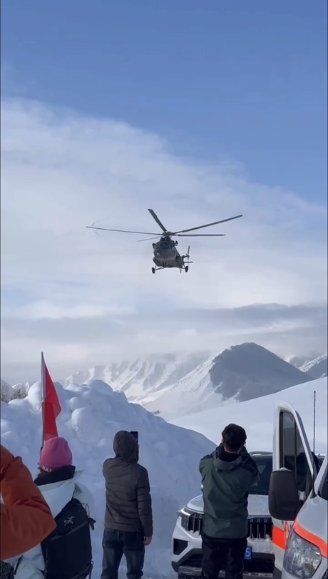 1月14日上午,新疆軍區(qū)某陸航旅任務(wù)機組裝載燃油、發(fā)電機、米面油等物資,和部分救援人員一起飛赴阿勒泰地區(qū)喀納斯點位進行投送。到達點位后,工作人員迅速卸載物資,部分因暴雪天氣被困的群眾登機,由喀納斯游客中心轉(zhuǎn)運至喀納斯機場。