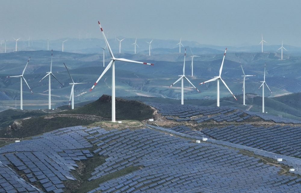 這是2023年9月2日拍攝的承德市豐寧滿族自治縣萬勝永鄉(xiāng)萬勝永村附近的一處風(fēng)光互補發(fā)電場(無人機照片)。新華社記者楊世堯 攝
