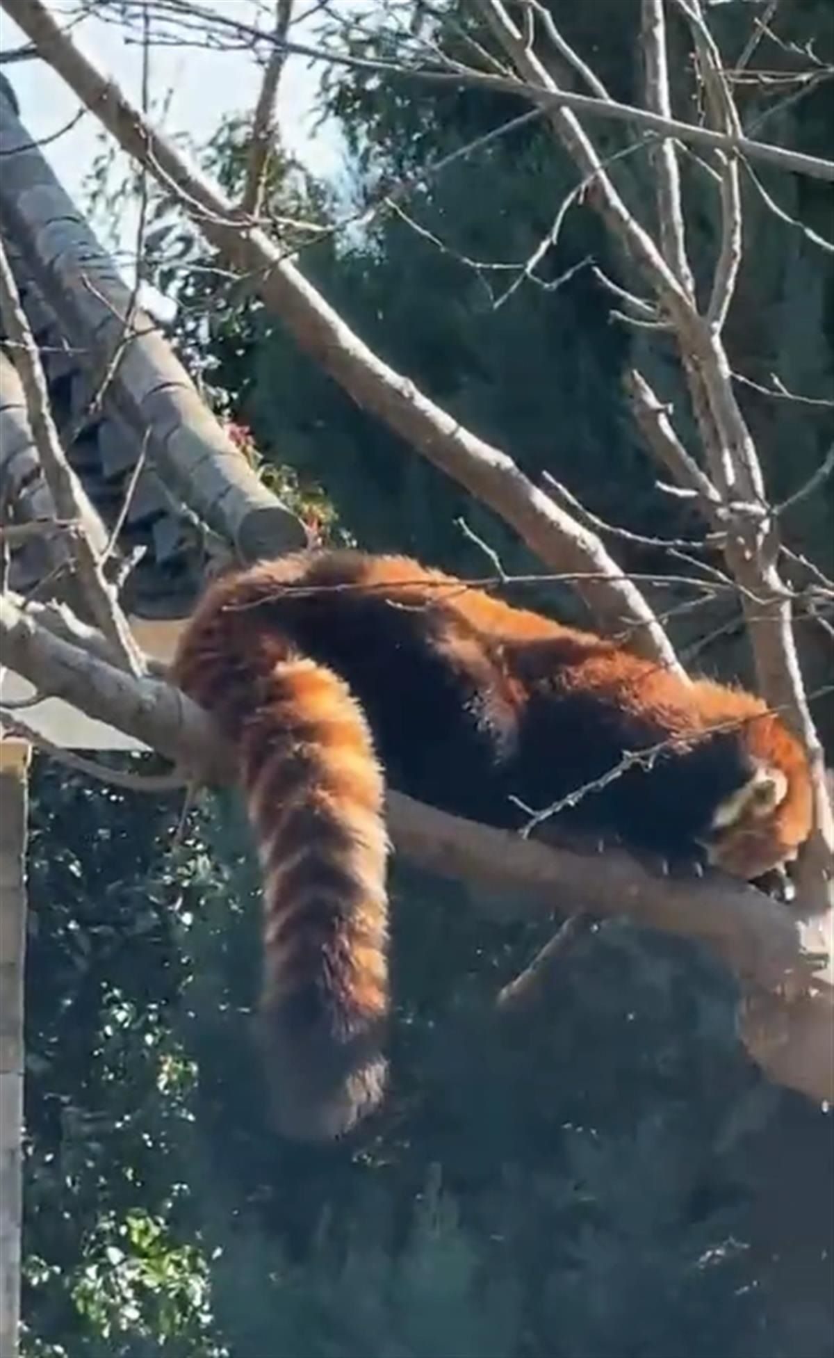 1月25日上午,極目新聞記者聯(lián)系上視頻發(fā)布者,對方解釋稱,其實(shí)動物園有兩只小熊貓,它們都藏在樹上了,自己第一眼沒看到,有些驚訝。其中一只小熊貓在視頻的最后三秒也出現(xiàn)了。