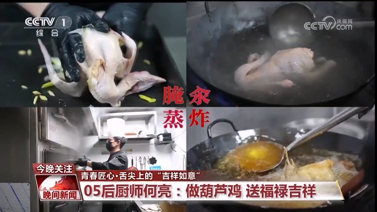 央視網(wǎng)消息:雞,是年夜飯的重要組成部分,因為“雞”諧音“吉”,吃雞寓意吉祥如意,大吉大利。接下來,我們一起認(rèn)識兩位廚師,看看他們?nèi)绾螒{借看家本領(lǐng),把雞做成特色美食的。