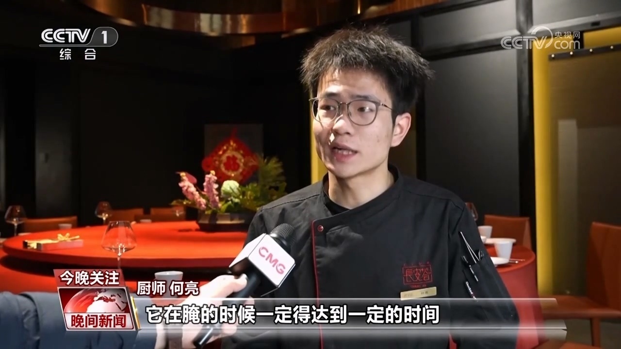 廚師 何亮:它在腌的時候一定要達到一定的時間,需要用一些香辛料,或者花椒鹽一塊去腌制它,要在十二個小時左右。蒸制的時候需要我們提前調(diào)制湯,它需要蒸兩個小時泡六個小時,我們提前一天完成其他的三道工序。