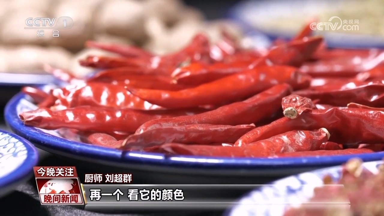 廚師 劉超群:作為我們火鍋雞最主要的原材料之一,這個(辣椒)主要看兩方面,一是它的辣度,再一個,看它的顏色,這種顏色比較鮮亮的,就證明是新的辣椒。麻椒顆粒的飽滿度,還有表皮的小點是影響它麻度的因素,小點越密集,麻度越高。