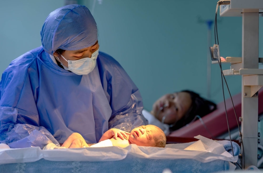 2月10日,在內(nèi)蒙古烏蘭察布市中心醫(yī)院,醫(yī)護(hù)人員將一名剛出生的“龍寶寶”推出產(chǎn)房。新華社記者 連振 攝