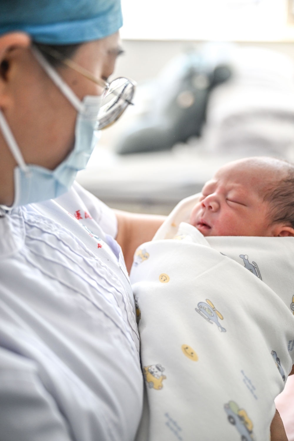 2月10日,在內(nèi)蒙古烏蘭察布市第三醫(yī)院,醫(yī)護(hù)人員抱著一名剛出生的“龍寶寶”。新華社記者 連振 攝