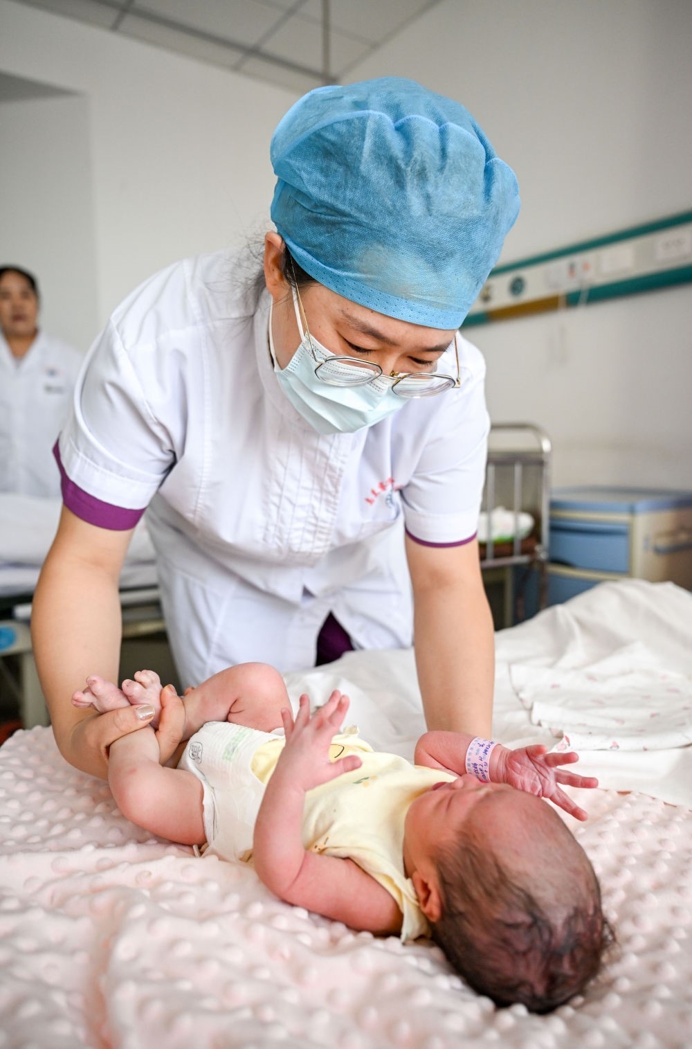 2月10日,在內(nèi)蒙古烏蘭察布市第三醫(yī)院,醫(yī)護(hù)人員在為一名剛出生的“龍寶寶”做護(hù)理。新華社記者 連振 攝