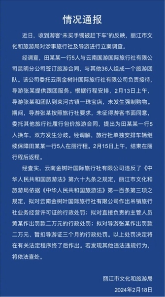 ·麗江通報“一家人未買5萬手鐲被趕下車”:未發(fā)生強(qiáng)制購物。