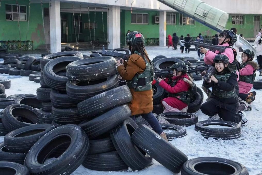 “前方障礙物發(fā)現(xiàn)敵情!”“快隱蔽!”……冬日的沈陽寒風(fēng)襲人,在沈陽市渾南區(qū)第九小學(xué)操場上,30名小學(xué)生分成兩組,身著CS裝備,正在激烈“戰(zhàn)斗”。在一系列奔跑、跳躍、匍匐中,孩子們既能強(qiáng)身健體,也增強(qiáng)了團(tuán)隊(duì)協(xié)作能力。