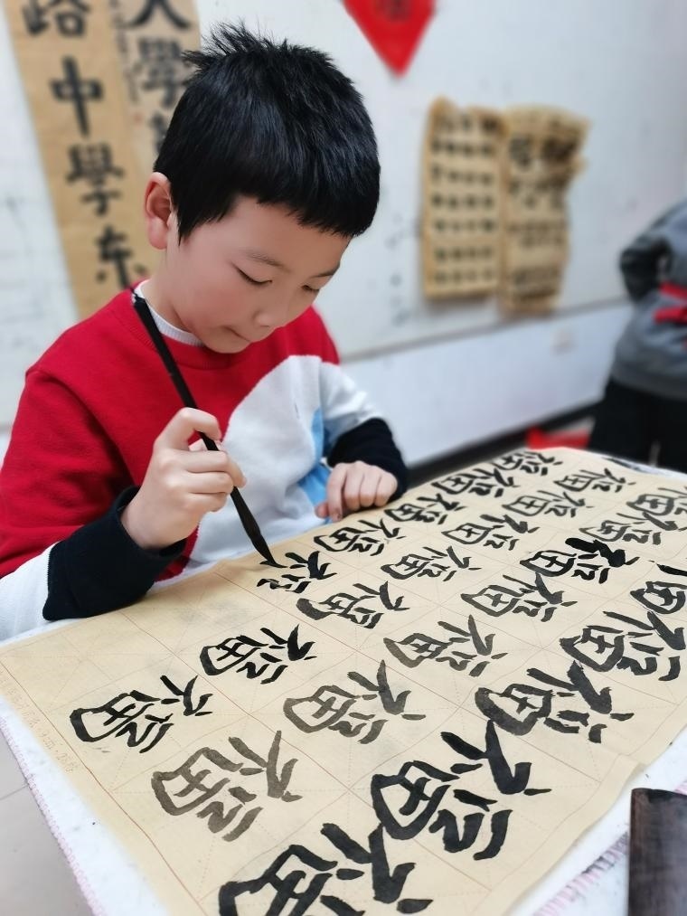 湖北省武漢市小學(xué)生參加寒假書法活動(dòng)。(受訪者供圖)