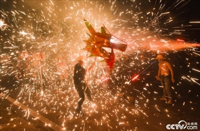 2024年2月18日,貴州省銅仁市松桃苗族自治縣孟溪鎮(zhèn)寨桿村舉行一年一度的“炸龍”鬧新春活動?!罢垺笔钱?shù)卮汗?jié)期間的一種傳統(tǒng)習俗文化,是人們祈求平安、富裕、健康的一種方式。