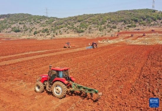 3月7日,在云南省開遠(yuǎn)市中和營(yíng)鎮(zhèn),農(nóng)機(jī)手駕駛拖拉機(jī)整地。