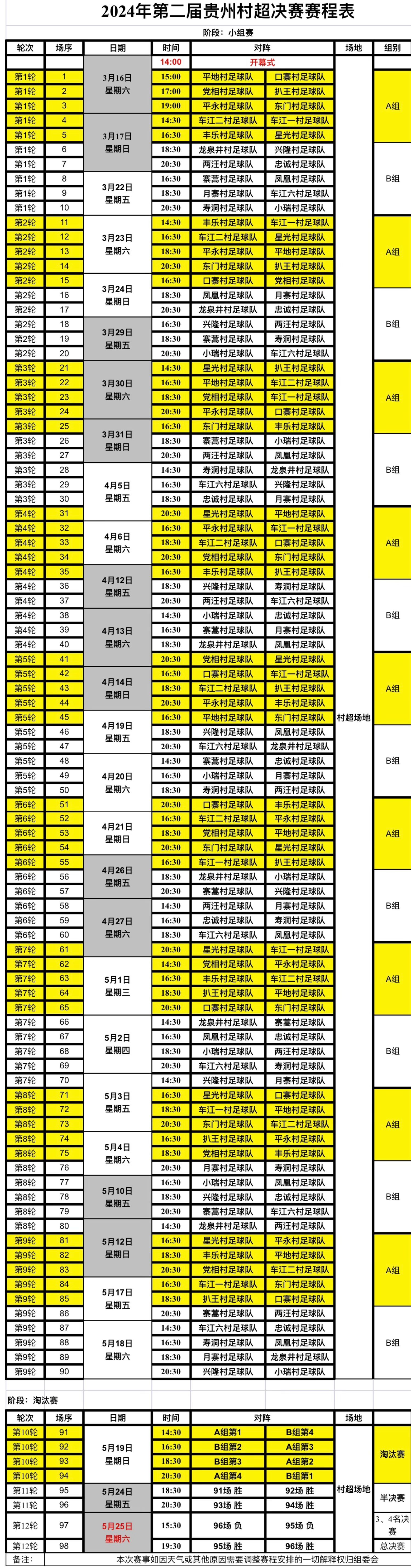 決賽階段的“村超”從3月16日開始,每周五到周日都會(huì)保證有比賽,逢節(jié)假日還會(huì)舉行加賽。球迷們只要在出發(fā)前記得確認(rèn)一下賽程表即可。建議可以上午先到當(dāng)?shù)赜斡[,體驗(yàn)民俗文化,晚上再去觀看“村超”賽事。