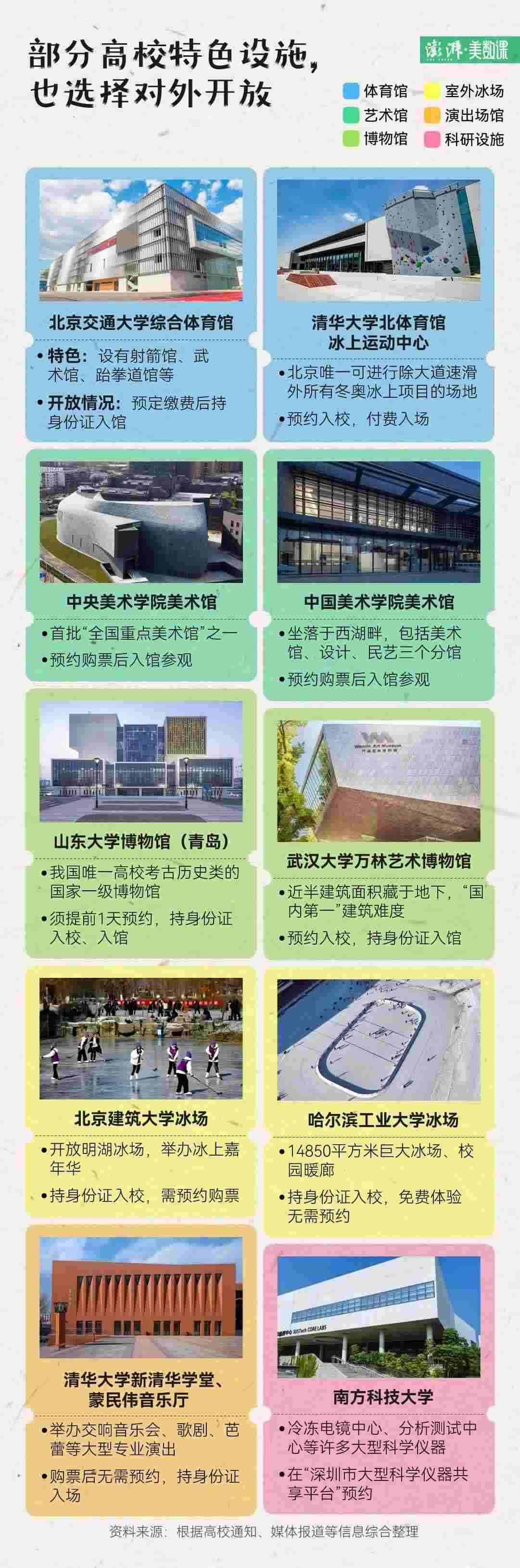 除了體驗(yàn)大學(xué)氛圍、參觀大學(xué)環(huán)境,還可以在高校預(yù)約運(yùn)動(dòng)場(chǎng)地,進(jìn)行體育鍛煉。例如,清華大學(xué)在去年剛剛開放的北體育館,除了有常見的健身中心、乒乓球館、籃球館等設(shè)施,還建有冰上運(yùn)動(dòng)中心,在夏天也可以滑冰、打冰球、撞冰壺。
