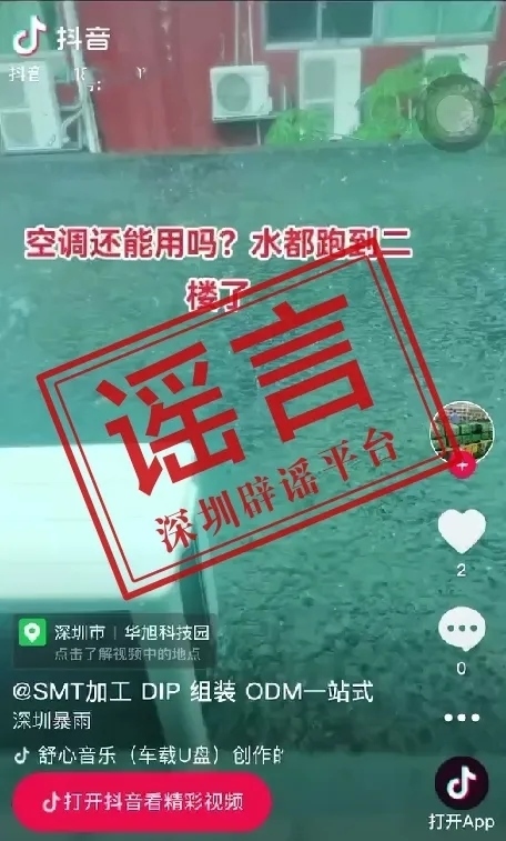 央視網(wǎng)消息:據(jù)“深圳網(wǎng)絡辟謠”微信公眾號消息,4月21日上午,有網(wǎng)帖稱深圳“寶安區(qū)華旭科技園由于雨水過大,二樓存在大量積水”,短視頻顯示的地點是“寶安區(qū)華旭科技園”。據(jù)向應急部門核查了解,信息不實,該科技園并沒有發(fā)生網(wǎng)帖所稱大量積水的情況。
