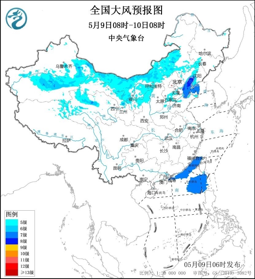 需要注意的是,今明兩天,北方部分地區(qū)風(fēng)力加大,中央氣象臺今晨繼續(xù)發(fā)布大風(fēng)藍(lán)色預(yù)警。預(yù)計遼寧中北部、吉林中部、內(nèi)蒙古大部、新疆東部和南疆盆地、青海西部、甘肅西部、寧夏大部、陜西北部、河北南部等地的部分地區(qū)有5~6級、陣風(fēng)7~9級的大風(fēng)。