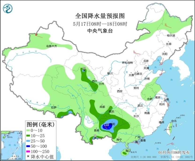 人民網(wǎng)北京5月16日電 (溫璐、高清揚(yáng))據(jù)中央氣象臺(tái)網(wǎng)站消息,昨日以來,貴州、云南、廣西、海南島等地的部分地區(qū)出現(xiàn)大到暴雨,其中廣西百色、崇左,海南五指山、保亭和三亞等地局地大暴雨。預(yù)計(jì)今明兩天,上述地區(qū)仍多降雨天氣,部分地區(qū)降水較強(qiáng),公眾需加強(qiáng)防范。