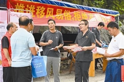 近日,廣西壯族自治區(qū)上林縣人民法院開展“推進(jìn)移風(fēng)易俗,拒絕高額彩禮”法治宣傳進(jìn)鄉(xiāng)村活動(dòng)。法院干警通過以案釋法和分發(fā)文明婚俗倡議書等方式,為村民解讀了涉彩禮糾紛法律規(guī)定,并就村民關(guān)注的彩禮認(rèn)定范圍、返還規(guī)則以及男女雙方共同生活認(rèn)定規(guī)則等熱點(diǎn)問題進(jìn)行了釋法答疑。圖為法院干警在和村民交流。本報(bào)記者 吳 琪 本報(bào)通訊員 韋姍婷 周 群 攝