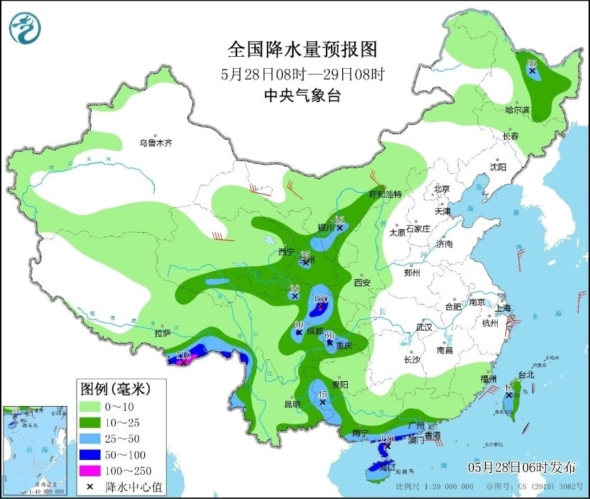 人民網(wǎng)北京5月28日電 (溫璐、高清揚)據(jù)中央氣象臺網(wǎng)站消息,昨日,較強降水主要出現(xiàn)在江南中東部、華南及西南地區(qū)東南部等地,其中,安徽銅陵,浙江金華和衢州,福建南平,廣東江門和茂名,廣西玉林、崇左、百色和南寧,云南文山等局地出現(xiàn)大暴雨。預(yù)計今明兩天,南方地區(qū)強降水范圍收縮,暴雨預(yù)警今晨已降級為藍色,但華南南部、西南地區(qū)東部等地部分地區(qū)仍雨勢較強,公眾需關(guān)注持續(xù)降雨對交通出行的不利影響,注意出行安全。