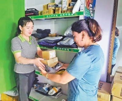 圖為斯衣提尼沙(右)在快遞服務站取快遞。
