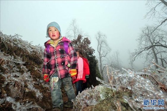 廣西桂林市全州縣蕉江瑤族鄉(xiāng)大源村位于桂北高寒山區(qū)。每年隆冬時(shí)節(jié),孩子們都要在老師和家長(zhǎng)的護(hù)送下,在一片冰天雪地中踏上求學(xué)之路。
