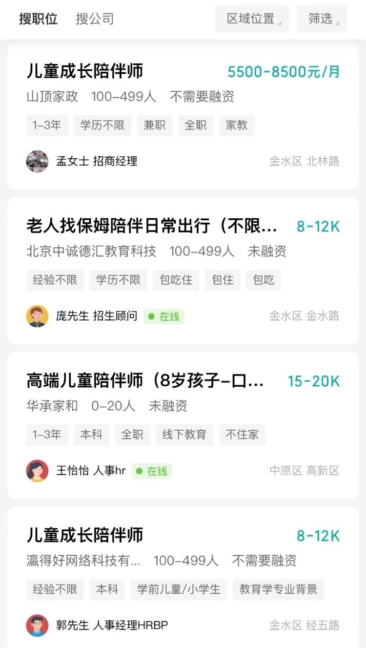 除了社交平臺,記者在某招聘平臺上發(fā)現(xiàn),招聘兒童成長陪伴師的帖子不在少數(shù),招聘方有些是家政公司,有些是中介機構(gòu),薪資從五千到四萬元不等。據(jù)了解,中介機構(gòu)給出的薪酬標(biāo)準(zhǔn)較為隨意,并且不繳納社保,有些還要收取第一個月工資20%的“中介抽成”。