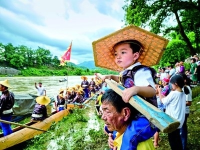 每年農(nóng)歷五月,在貴州省黔東南苗族侗族自治州的清水江流域,當(dāng)?shù)氐拿缱迦罕姸紩e辦苗族獨(dú)木龍舟節(jié)。龍舟節(jié)以水上龍舟競渡為載體,融合了苗族服飾文化、歌舞文化、飲食文化等,數(shù)百年經(jīng)久不衰,沿襲至今。2008年,苗族獨(dú)木龍舟節(jié)便被列入第二批國家級非物質(zhì)文化遺產(chǎn)代表性項目名錄。