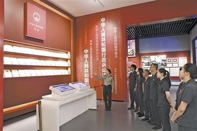 近日,江西省瑞金市人民法院分批次組織黨員干部前往中華蘇維埃共和國法制建設紀念館參觀學習,共同回顧紅色法治發(fā)展軌跡,賡續(xù)紅色法治血脈。紀念館中復原的“七里坪革命法庭”“馬錫五下鄉(xiāng)斷案”場景逼真且震撼,黨員干部不時駐足觀看,互相交流討論。圖為法院黨員干部聆聽講解。