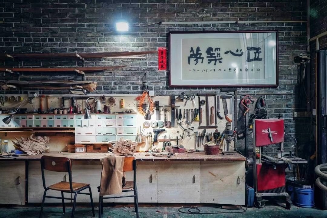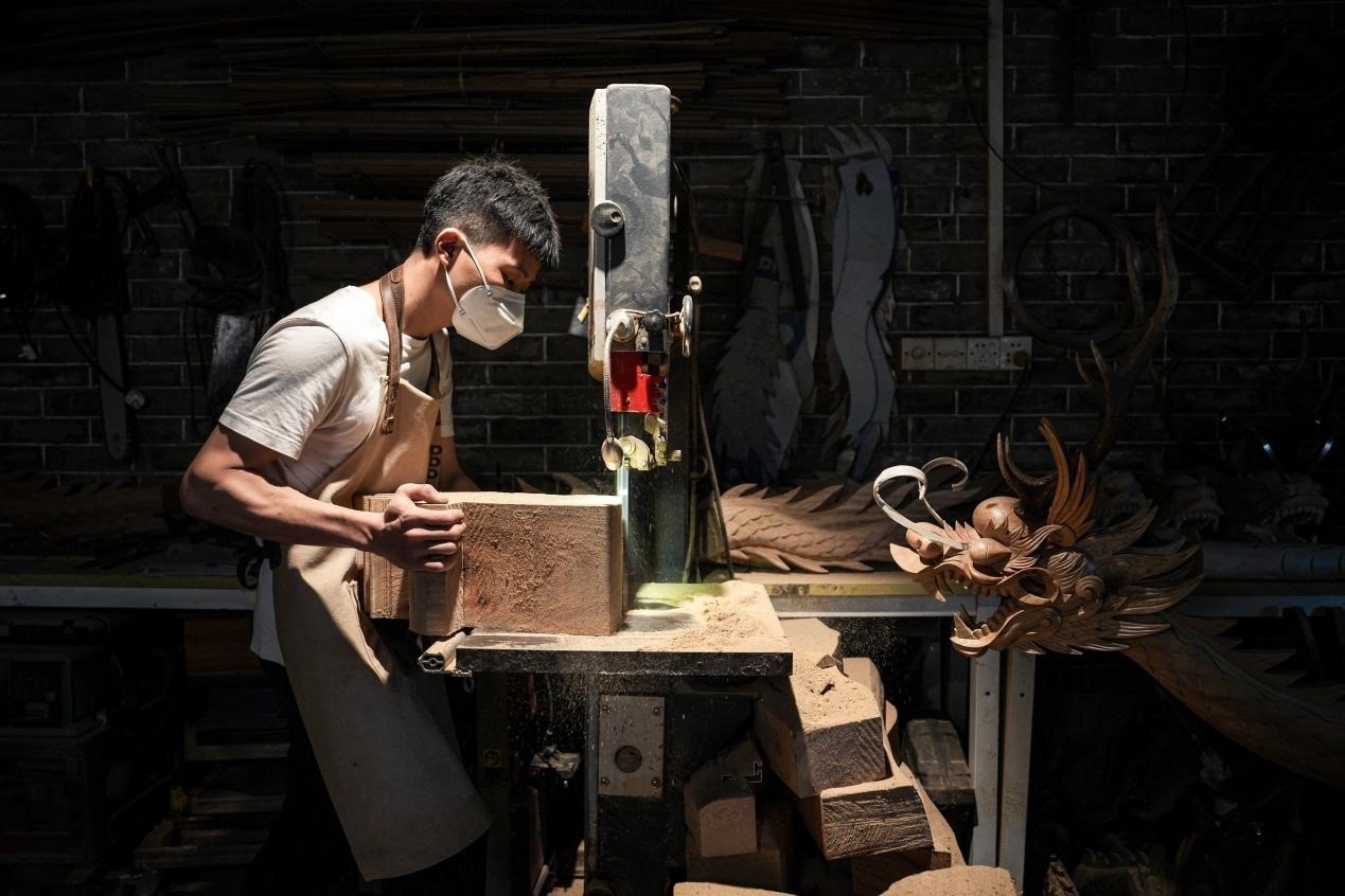 張偉潮身上的傷也沒(méi)斷過(guò)?!疤焯旄洞蚪坏?,有時(shí)候傷口剛縫了線,回到家一干活,刀口又開了”,手臂上、手背上遍布的傷疤,見證了每一個(gè)龍頭的誕生。“每下一刀,我都已經(jīng)想好了后面的第二步、第三步”,龍頭雕刻極為考究,從選料、切割,到粗雕、精雕,再到打磨、拋光、裱漆,十幾道繁瑣工序,全靠師傅的眼光和手藝。機(jī)械化、流水線,做不出龍頭嗎?在數(shù)不清的日夜里,光影斑駁間,張偉潮拿著父輩傳下的一刀一錘,一下一下,慢慢開鑿,給出自己的答案。
