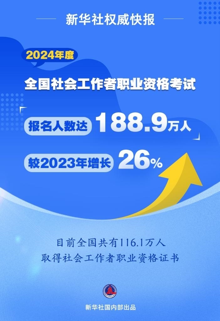 新華社北京6月16日電(記者馮家順)2024年度全國社會工作者職業(yè)資格考試于6月15日至16日舉行。記者16日從中央社會工作部獲悉,今年考試報名人數(shù)達188.9萬人,較2023年增長26%,再創(chuàng)歷史新高。