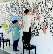 藝術(shù)家文娜和許村村民共同創(chuàng)作壁畫。合美術(shù)館提供