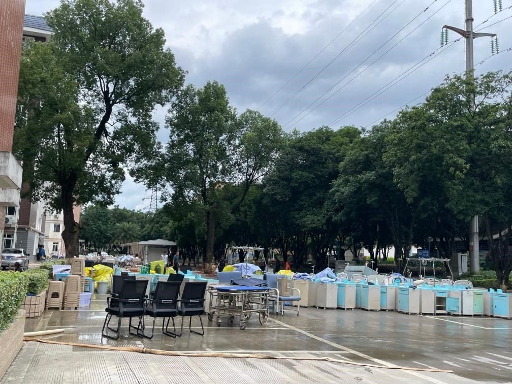 6月21日,桂林市南溪山醫(yī)院正清洗醫(yī)院物資。新華社記者李歡 攝