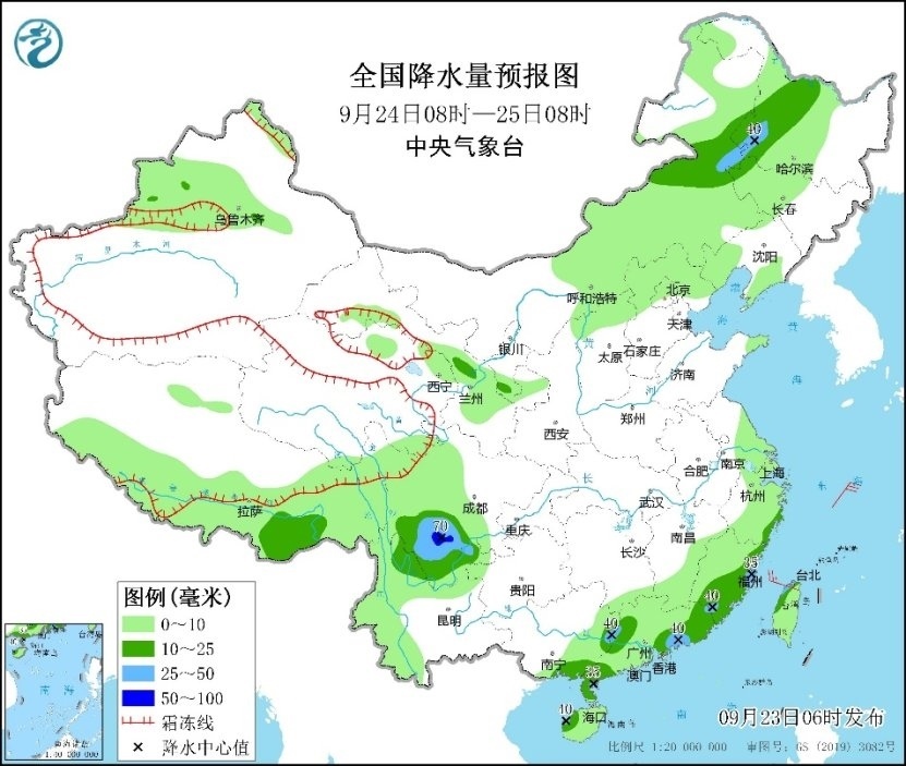 人民網(wǎng)北京9月23日電 (溫璐、高清揚)據(jù)中央氣象臺消息,昨日,強降雨集中在福建、廣東及海南島等地,監(jiān)測顯示,浙江東南部、福建東部沿海、廣東東南部和雷州半島、海南島、臺灣島北部和西南部等地部分地區(qū)出現(xiàn)暴雨或大暴雨,福建福州、莆田,海南???、文昌、澄邁等地局地特大暴雨(250~424毫米)。