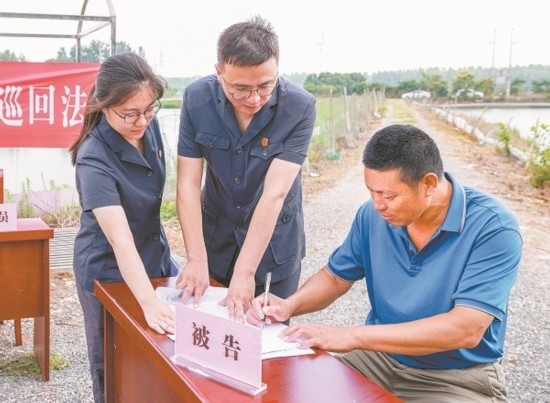 近日,安徽省天長(zhǎng)市人民法院秦欄人民法庭法官來到東風(fēng)村螃蟹養(yǎng)殖基地,公開開庭審理一起農(nóng)業(yè)承包合同糾紛案。法官經(jīng)過現(xiàn)場(chǎng)勘查、細(xì)心調(diào)解,當(dāng)場(chǎng)化解糾紛,養(yǎng)殖戶投放的500斤蟹苗有了著落,村委會(huì)減少了經(jīng)濟(jì)損失。