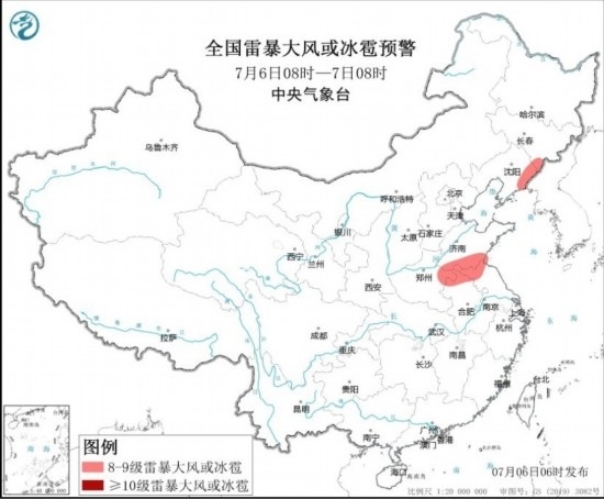 全國雷暴大風(fēng)或冰雹預(yù)警(7月6日08時-7日08時) 圖源:中央氣象臺網(wǎng)站