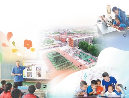 圖①:潘苑給孩子們上鋼琴課。 受訪者供圖 圖②:海原縣關(guān)橋中學(xué)全貌。林宇陽(yáng)攝(人民視覺) 圖③:唐曉宇給學(xué)生們上英語課。 受訪者供圖 圖④:林宇陽(yáng)和學(xué)生們?cè)谝黄稹JY逢洲攝(人民視覺)