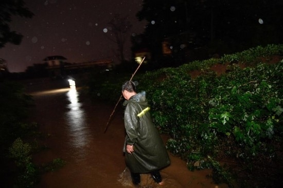 18日晚上,夜色深沉,一陣?yán)坐Q轟然響起,雨還是下了起來。抓起椅背上的雨衣,抖了抖上面的雨水,呂懷義又開始巡堤工作,銀色的雨幕中,河堤上成排的防汛隊(duì)伍清晰可見……(參與采寫:鄭家寶)