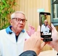 在天津靜雅老人院內(nèi),年輕人為老人拍攝短視頻。新華社發(fā)