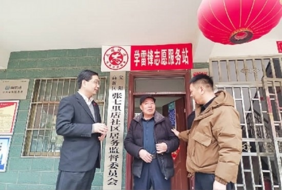湯陰縣法院駐村法官在社區(qū)調(diào)解糾紛。