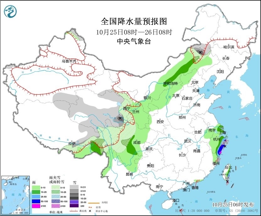 另外,10月25日至28日,受弱冷空氣影響,西北地區(qū)中東部、華北地區(qū)、內(nèi)蒙古、東北地區(qū)等地部分地區(qū)將有3~6℃降溫,西北地區(qū)東部、內(nèi)蒙古中部部分地區(qū)可達(dá)8℃以上;青藏高原東部有小到中雪或雨夾雪,青海東南部、川西高原北部、內(nèi)蒙東部等地局地大到暴雪。