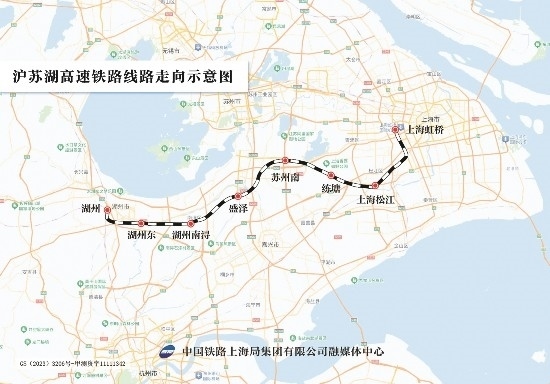 滬蘇湖高鐵是上海、蘇州、湖州基礎設施互聯(lián)互通的重大項目,也是長三角高鐵聯(lián)網(wǎng)、補網(wǎng)、強鏈的重點項目。滬蘇湖高鐵由上海虹橋站引出,途經(jīng)蘇州市,終至湖州市湖州站,線路全長約163公里,設計時速350公里,設上海虹橋、上海松江、練塘、蘇州南、盛澤、湖州南潯、湖州東、湖州站等8座車站。