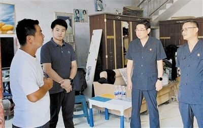 圖①:干警帶同學(xué)們體驗(yàn)敲法槌。