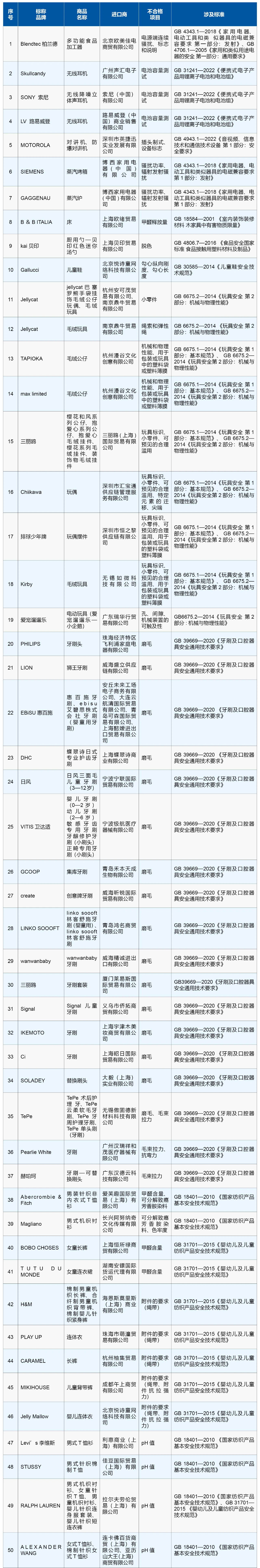 據(jù)海關(guān)總署介紹,不合格情況包括進(jìn)口小家電電池容量測試、電器輻射發(fā)射項目不合格;進(jìn)口玩具機(jī)械和物理性能、小零件項目不合格;進(jìn)口服裝甲醛含量、可分解致癌芳香胺染料超標(biāo);進(jìn)口家具甲醛釋放量超標(biāo);進(jìn)口牙刷磨毛不合格等。
