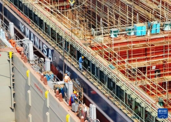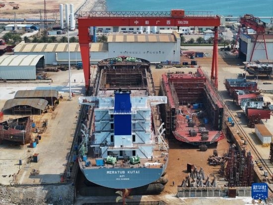 中國船舶集團(tuán)廣西造船有限公司船舶建造現(xiàn)場(3月20日攝,無人機(jī)照片)。