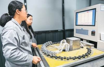 加強(qiáng)食品安全監(jiān)管,為冷鏈設(shè)備制造企業(yè)帶來(lái)了發(fā)展機(jī)遇。圖為西科冷鏈江門(mén)制造基地的產(chǎn)品實(shí)驗(yàn)室工程師在進(jìn)行電子元件耐用性測(cè)試。