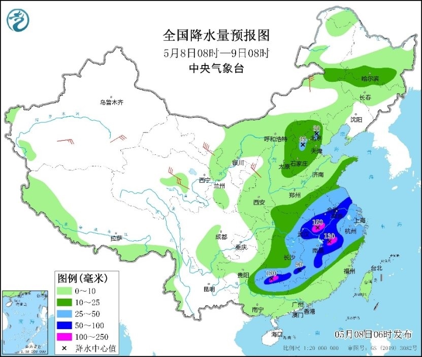 預(yù)計(jì)今天白天至夜間,江淮大部、江漢東部、江南西南部和中東部、華南北部以及華北東北部等地部分地區(qū)有大到暴雨,其中,安徽西南部、湖北東部、江西東北部、浙江西部、廣西北部等局地有大暴雨;上述部分地區(qū)伴有短時(shí)強(qiáng)降水、8級(jí)以上雷暴大風(fēng)或冰雹天氣等強(qiáng)對流天氣,其中,安徽西南部、湖北東部、湖南東部、江西中北部、廣西東北部等局地將有10級(jí)以上雷暴大風(fēng),最大風(fēng)力可達(dá)11級(jí)以上,江西北部等地局地不排除出現(xiàn)龍卷的可能性。